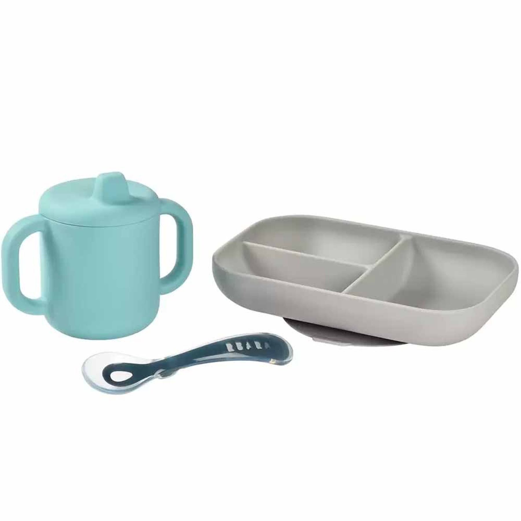 Набір силіконового посуду Beaba (3 предмета) - блакитний/сірий