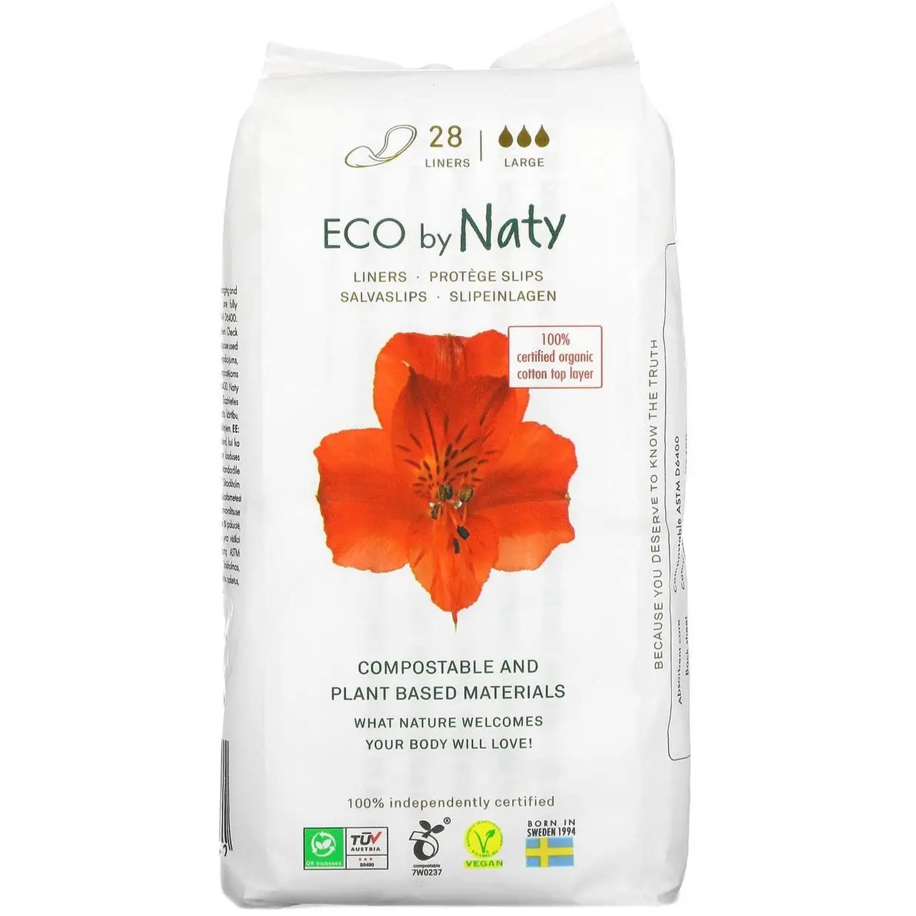 Одноразові щоденні гігієнічні жіночі прокладки "Eco By Naty" Normal, 32 шт в упаковці