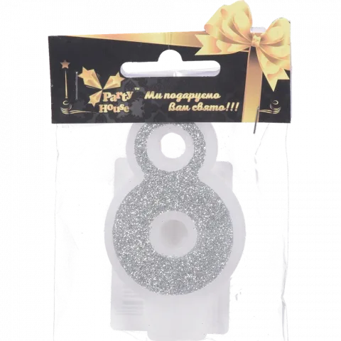 Свічка цифра 8 велика Party House срібло 1 шт.
