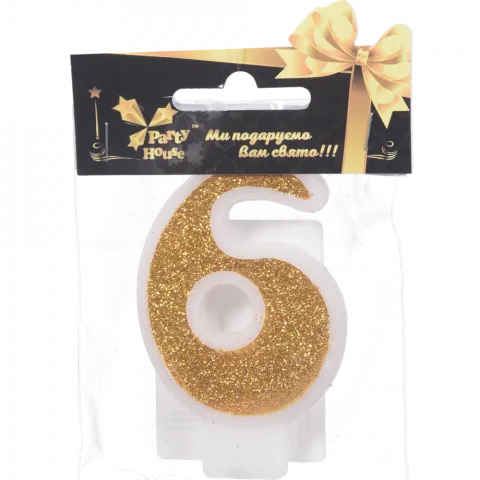 Свічка цифра 6 велика Party House золото 1 шт.