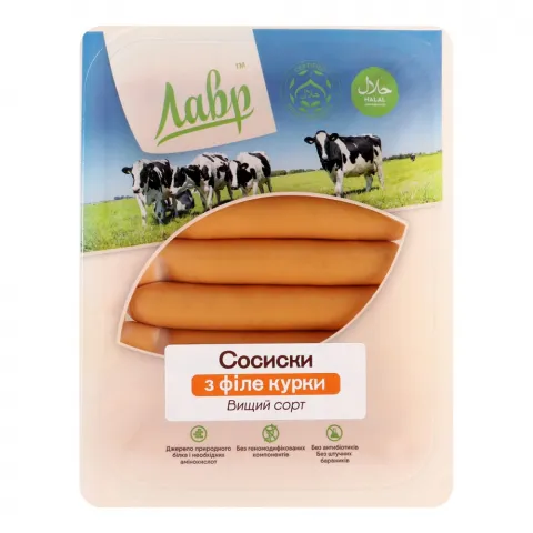 Сардельки Лавр з філе курки 400 г н/о в/ґ