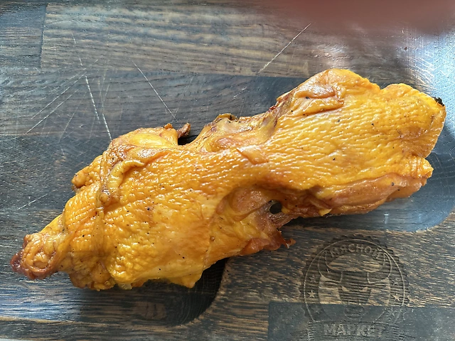 Настоящий бройлер выращенный и выкормленный в домашних условиях. Вес тушки около 2 кг.