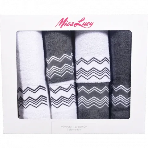 Набір Рушників подарункових 6 шт. Miss Lucy 30х50, 50х90, 70х140 см білий зігзаг 8R5066 И748