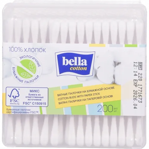 Ватні пал. Bella 200 шт. кор. на паперовій основі