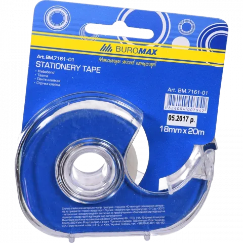 Клейка стрічка BuroMax канц. 18 мм х 20 м прозора в диспенсері BM.7161-01