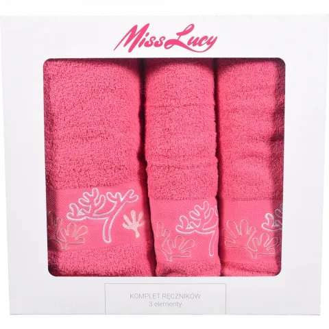 Набір Рушників подарункових 3 шт. Miss Lucy 30х50, 50х90, 70х140, 480 г/м2 рожевий 8R5051 И595