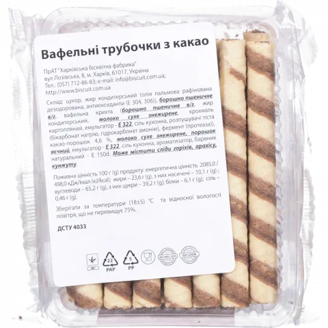 Трубочки ваф. Марія 450 г з шоколадною начинкою