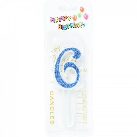 Свічка для торту Цифра 6`, з глітером арт. 6961-13 И605`