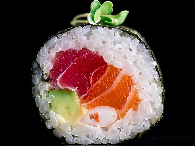Рис, норі, тигрова креветка, лосось, тунець, авокадо.